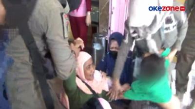 Seorang pengemis histeris saat akan diamankan petugas Satpol PP Kota Semarang, Jawa Tengah. Dalam razia kali ini, sebanyak 23 gepeng berhasil dijaring petugas.