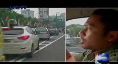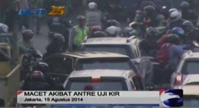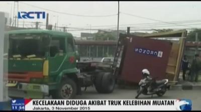 Tidak kuat menanjak sebuah truk peti kemas terperosok di Jalan TB.Simatupang, Jakarta, akibatnya lalu lintas pun macet parah.