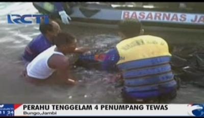 Dua orang tewas akibat sebuah perahu penyeberangan antarkampung tenggelam di Sungai Jeneberang, Goa, Sulawesi Selatan.