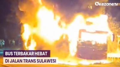 Bus Mira jurusan Yogyakarta-Surabaya terbakar di Jalan Raya Ngawi, Jawa Timur, diduga akibat korsleting listrik.