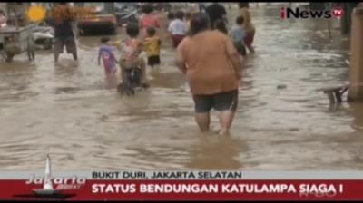 Kawasan Bukit Duri, Jakarta Selatan kembali dilanda banjir meski hujan tidak turun. Proyek normalisasi kali Ciliwung menjadi salah satu penyebabnya.