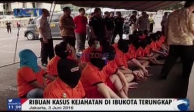 Polda Metro Jaya menggelar hasil tangkapan operasi Pekat Jaya selama Mei 2016 dengan 1.339 kasus. Dalam kasus tersebut, Polres Jakarta Utara yang paling banyak.
