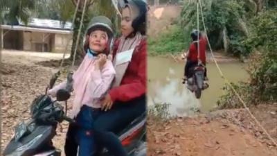 Sensasi bermain flying fox dari ketinggian 20 meter dengan menikmati keindahan alam gunung rinjani di lombok, NTB.