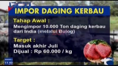 Pemerintah akan mengimpor daging kerbau untuk menyiasati harga daging sapi yang masih tinggi di pasaran. Namun, rencana tersebut menuai penolakan dari berbagai pihak.