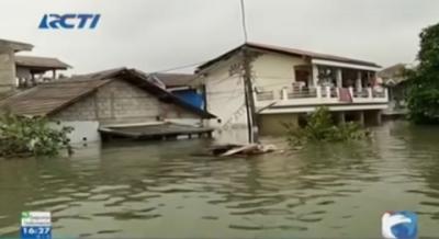 Banjir yang mengenangi perumahan Total Persada di Tangerang, Banten, sudah mulai surut. Sebanyak 16 pompa penyedot digunakan untuk mempercepat surutnya air.