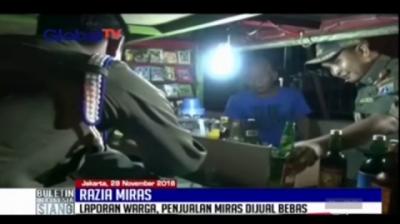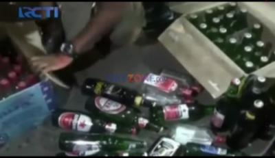 Petugas gabungan menggelar razia minuman keras di Duren Sawit, Jakarta Timur. Petugas pun mengamankan minuman keras oplosan