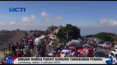 Ribuan wisatawan memadati kawasan wisata Gunung Tangkuban Perahu di Kabupaten Bandung. Udara yang sejuk dan pemandangan yang indah menjadi daya tarik bagi wisatawan berkunjung ke Gunung Tangkuban Perahu.