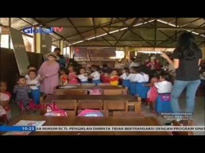Runner up kedua Miss World 2016 natasha mannuela hadir dalam acara syukuran sekolah alam di Bantargebang, Bekasi.