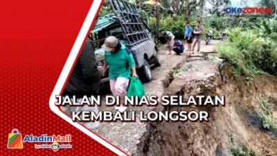 Kerap dilanda hujan, jalan utama di Langkat, Sumatera Utara longsor hingga membahayakan warga yang melintas di atasnya.