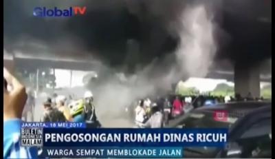 Aksi tolak pengosongan rumah dinas TNI di depan Istana Negara, Jakarta ricuh.