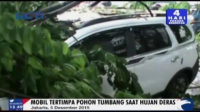 Satu orang tewas dan dua lainnya luka-luka setelah sebuah mobil sedan tertimpa pohon di Jalan Lenteng Agung Barat, Jakarta Selatan. Proses evakuasi berjalan dramatis.