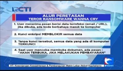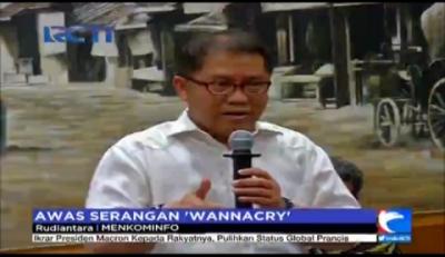 Serangan Cyber virus Rainwarre Wanna Cry, telah sampai ke Indonesia dan 153 negara lainnya. Sejumlah pihak menonaktifkan jaringan internet dan menggandakan data di tempat terpisah, slah satunya di Pemkot Tangerang, Banten, selama lima jam.