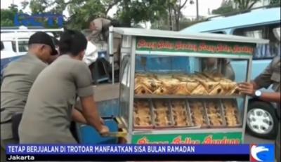 Razia pedagang parcel yang berjualan di atas trotoar jalan di kawasan Cikini, Jakarta Pusat berlangsung ricuh.