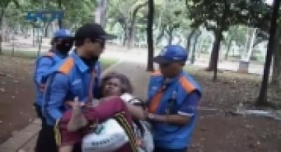 Sejumlah pengemis dan gelandangan terjaring razia petugas Satpol PP yang mengadakan razia di jalan protokol, Jakarta Pusat.