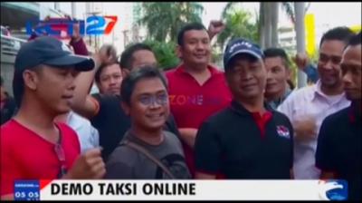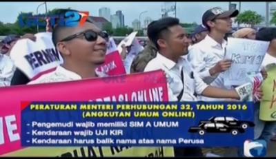 Aksi taksi konvensional yang mencegat dan menggebrak mobil yang diduga sebagai angkutan berbasis aplikasi online di Semarang, Jawa Tengah.