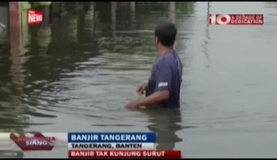 Hujan deras mengakibatkan enam perumahan di Kampung Bulak, Tangerang Selatan, Banten, terendam banjir setinggi 50 cm.