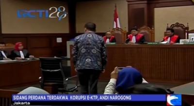Terdakwa kasus korupsi megaproyek E-KTP, Andi Narogong, divoanis delapan tahun penjara dan denda Rp1 miliar oleh Majelis Hakim Pengadilan Tindak Pidana Korupsi Jakarta.