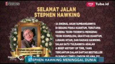 Stephen Hawking meninggal dalam 76 tahun pada 14 Maret 2018. Upacara pemakamannya digelar di Westminster Abbey, Inggris. Abu Hawking akan dimakamkan sejajar dengan makam ilmuwan legendaris lainnya, yakni Sir Isaac Newton dan Charles Darwin.