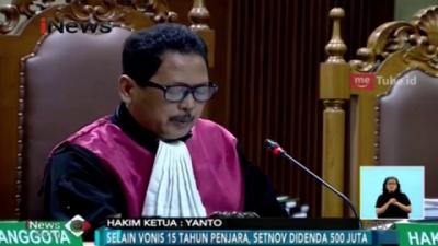 Majelis Hakim Pengadilan Tipikor menjatuhkan vonis hukuman 15 tahun penjara kepada Setya Novanto dalam kasus korupsi E-KTP.