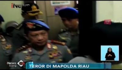 Sekitar pukul 9:30 WIB 8 terduga teroris melakukan penyerangan terhadap Mapolda Riau dengan menabrakan minibus ke pagar sisi belakang Mapolda Riau.