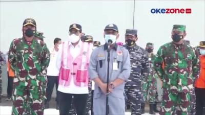 Kepala Badan SAR Nasional Marsekal Madya M Syaugi bersama dengan Panglima TNI Marsekal Hadi Tjahjanto memberikan keterangan pers mengenai perkembangan pencarian kotak hitam Lion Air JT 610 di Pelabuhan Tanjung Priok, Jakarta, Rabu (31/10/2018) malam. Saat ini tim gabungan yang terdiri dari Basarnas, TNI dan Polri telah berhasil mendeteksi keberadaan kotak hitam pesawat Lion Air JT 610 , hal ini dipastikan dengan tertangkapnya sinyal kotak hitam oleh salah satu kapal yang membantu proses evakuasi di perairan Karawang, Jawa Barat.
