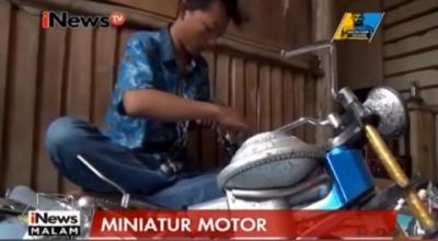 Beragama miniatur sepeda motor tercipta secara apik oleh tangan seorang pemuda Blora, Jawa Tengah. Banyaknya tanaman bambu di sekitar rumah, memacu dia untuk berkreasi sekaligus menjadikan memiliki nilai ekonomi tinggi. Hasil garapannya sangat halus dan mirip aslinya, mulai dari setang kemudi hingga blok mesin, memperhatikan kualitasnya. (Kontributor: Taufik Budi)