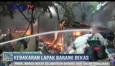 Diduga akibat hubungan arus pendek listrik, sebuah lapak pengepul barang bekas di Kampung Sawah, Pondok Rajeg, Jawa Barat, ludes terbakar. Tak hanya lapak, kebakaran juga melahap dua unit truk yang tengah terparkir di kawasan itu.