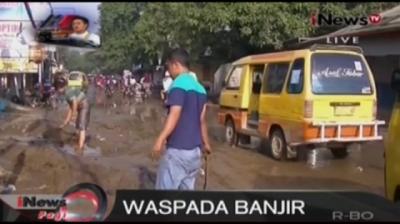 Warga panik karena banjir membawa material lumpur dan kayu. Arus banjir cukup deras menghantam permukiman.