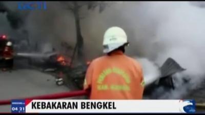 Sebuah rumah yang digunakan sebagai bengkel terbakar di Polewali Mandar, Sulawesi Barat. Api membesar dengan cepat akibat banyaknya bahan yang mudah terbakar di dalam bengkel.