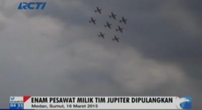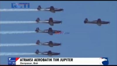 Tim Jupiter dipimpin oleh Capt. Ain Putu Kedaton, melakukan latihan pada Sabtu (25/2/2023). Satu per satu gerakan manuver, peragakan mulai dari Eagle Pass Arrow Head Loop, Cross Over Brake hingga yang terakhir adalah Clover Leaf and Cascade.
