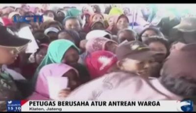 Sejumlah warga bahkan jatuh pingsan akibat saling berdesakan di bawah terik matahari. Warga yang tidak kebagian kupon protes dan mengeluh karena sudah antre dari jam 5 pagi.