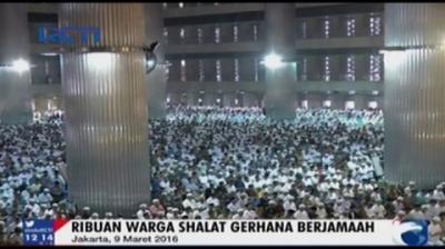 Fenomena astronomi Gerhana Matahari Hibrida terjadi Kamis (20/4/2023). Masjid Besar Al-Falah, Bambu Apus, Jakarta Timur, menggelar salat Gerhana Matahari (Salat Kusuf).