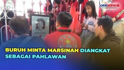 Ribuan buruh menggelar unjuk rasa di kawasan Patung Kuda pada May Day 2023. Mereka menyanyikan lagu-lagu perjuangan dan membawa bendera.