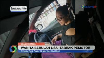Pengemudi wanita diduga mabuk saat berkendara hingga kehilangan kendali. Gerobak pedagang yang ditabrak hancur dan dua motor juga ringsek.