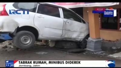 Sebuah minibus menabrak sebuah rumah parkiran sepeda motor di Jalan Majelis, Meruya Utara, Jakbar, Kamis (4/1).