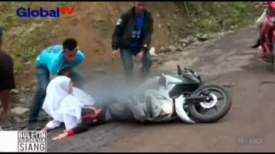 Warga Evakuasi Pemotor Jatuh ke Sungai di Bangkalan