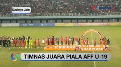 Timnas U-19 Indonesia memastikan gelar juara Piala AFF U-19 2024 usai mengalahkan Thailand dengan skor 1-0 pada laga final yang digelar di Stadion Gelora Bung Tomo, Surabaya, Jawa Timur, Senin (19/7).