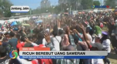 Video selanjutnya acara jalan sehat di Jombang ricuh pada Minggu (25/8/2024). Peserta berebut uang saweran yang disebar di atas panggung
