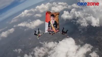 Pada penampilan pamungkas, lima penerjun yang membawa lima bendera besar ini melambangkan semangat tentara Indonesia.
