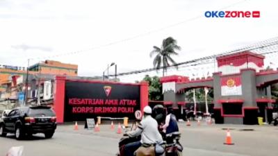 Aksi Penerjun Payung Polri Kibarkan Wajah Jokowi dan Prabowo di Langit Depok