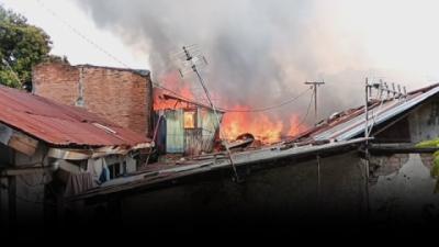 Kebakaran hebat melanda sejumlah bangunan, Sabtu (28/12/2024). Kebakaran terjadi di kawasan Koja, Jakarta Utara. Kebakaran ini telah menghanguskan enam bangunan.
