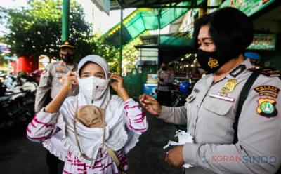 Polisi Grebek Pasar PAL Cimanggis Bagikan Masker dan Sosialisai Prokes