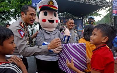 Rayakan Hut Bhayangkara, Polisi Bagikan Bingkisan untuk Warga di Alun-Alun Serang