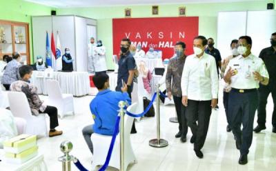 Jokowi Ditemani Anies Tinjau Vaksinasi Covid-19 para Guru di SMA 70