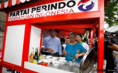 Anies Baswedan Makan Mie Ayam dari Pelaku UMKM Binaan Partai Perindo
