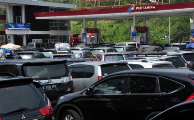 INFO MUDIK 2017: Antrean Mengular Kendaraan Pemudik di SPBU Rest Area 207 Palikanci