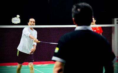 Presiden Jokowi Tanding Badminton Lawan Atlet Nasional di Bali International Convention Center