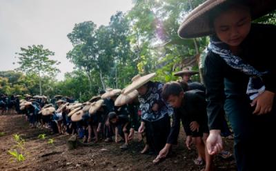 Ratusan Warga Baduy Luar Ikuti Tradisi Ngaseuk Yakni Tradisi Menanam Padi Bersama