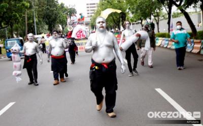 Buruh Gelar Teatrikal saat Unjukrasa Tolak UMP di Balai Kota DKI Jakarta
