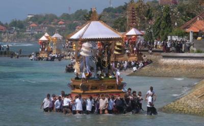 Persiapan Hari Raya Kuningan di Pura Sakenan Denpasar
